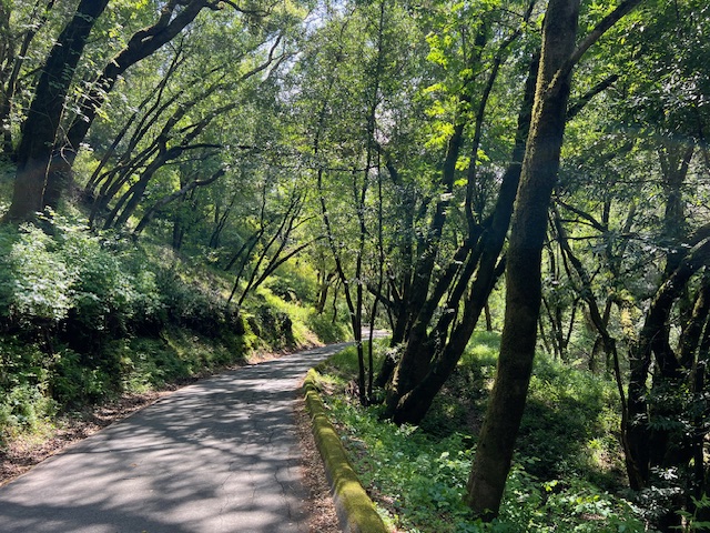 Roger is waiting for me at the top. Except that it’s not the top; it’s just one of the “tops” as we roll along a ridge line in the hills. We cross the Bodega Highway, which is a continuation of Bodega Avenue and continue north. Part of me wanted to turn onto Bodega because Wild Flour Bakery is literally just down the road in Freestone. But we continue north on Jonive, which has a short but nasty 13% grade, which is obscured on Google Maps.