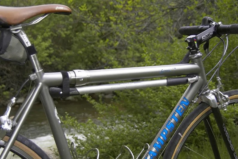 Hand pumps. Hand pumps come in a huge variety of sizes. Back in the day the most common kind for “ten speed” bicycles was a “frame” pump. It was called that because the pump was sized to fit in the main triangle of your bike, either parallel to the seat tube or the top tube. (Some cyclists put them parallel to a seat stay. These pumps either attached to the frame between pegs or the pump had a spring in the handle that allowed it to fit directly in the main triangle without any pegs. Hand pumps either had a head that you attached directly to a tire valve or it had a short hose from the pump to the valve. One advantage of frame pumps is that their longer size allowed you to pump more air into the tire with fewer strokes.